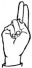 На ћирилици написано ЋЕТКО ПОСТОЛОВИЋ састоји се из 15 слова [?]. Исписано ћириличном једноручном азбуком за глувонеме: